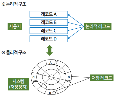- 논리적 레코드 - 논리적 구조에서 취급하는 데이터 레코드