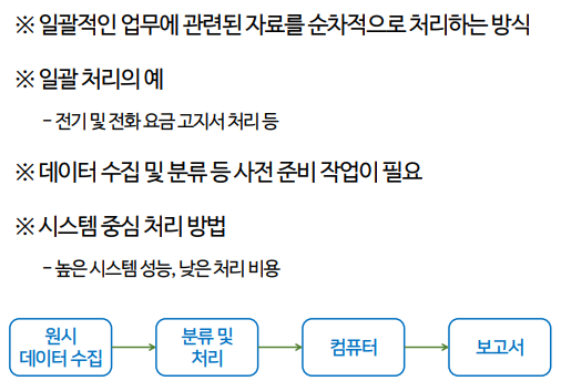 - 일괄 처리, 온라인 처리, 분산 처리