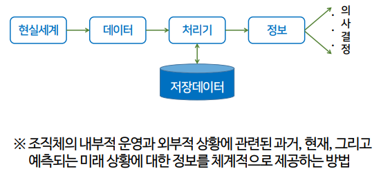조직체에 필요한 데이터를 수집, 조직, 저장하여 의사결정에 필요한 정보를 생성, 분배하는 수단으로 사용되는 시스템