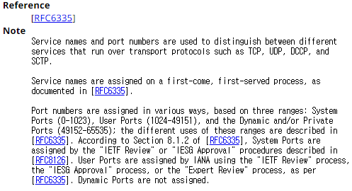해당 홈페이지에 가면 PORT 사용에 대한 레퍼런스를 참고할 수 있다