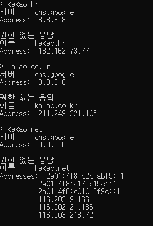 - cache에 저장되어 있는 dns를 확인(브로드 캐스트를 줄이기 위한 장치) cmd에서 ipconfig /displaydns, cache에 저장된 dns를 초기화 하는 명령어는 ipconfig /flushdns