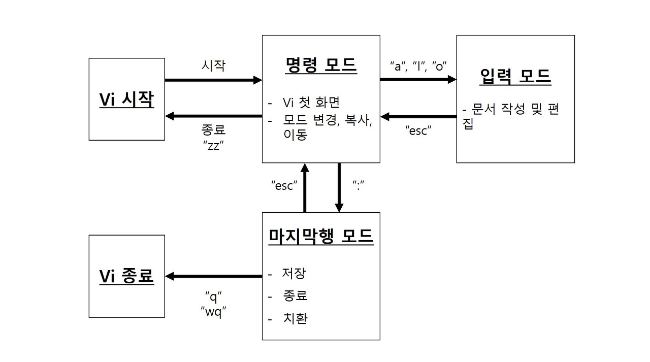 - :q = 종료, :q! = 강제종료(저장안함), :w = 저장, :wq! 강제 저장 후 에디터 종료