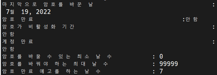 설정된 계정 만료 일자에 대한 내용 출력