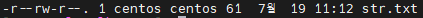 - 첫자리는 파일의 종류 -는 일반파일, d는 디렉터리