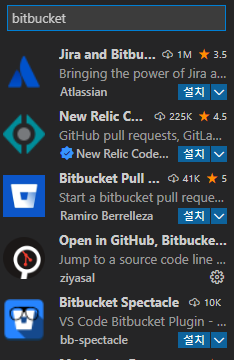vscode 확장 설치화면에서 bitbucket을 검색하면 최상단에 관련 확장이 나온다. 설치.