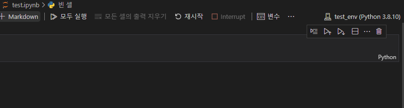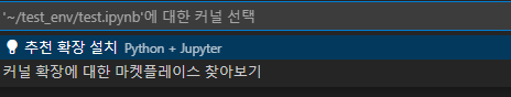 돌아와서 ipynb 파일을 열어보면 test_env 환경의 커널을 자동으로 잡은 것을 확인 가능