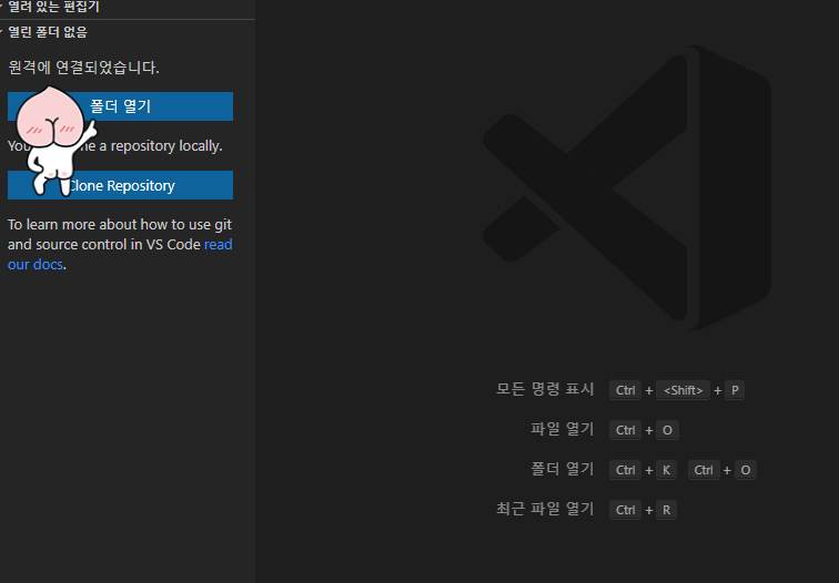 폴더 열기를 눌러서, VSCODE Workspace 환경을 생성
