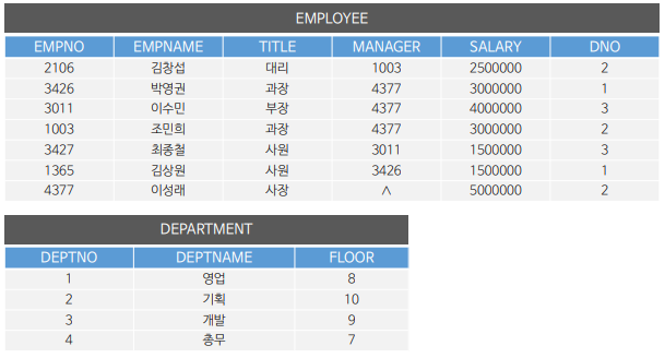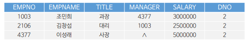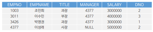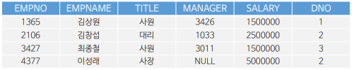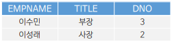 - 속성 앞에 릴레이션의 명칭을 명시 EX) EMPLOYEE.DNO