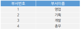 SELECT DEPTNO AS 부서번호, DEPTNAME AS 부서이름 FROM DEPARTMENT