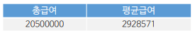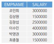 SELECT SUM(SALARY) AS 총급여, AVG(SALARY) AS 평균급여