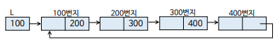 - 마지막 노드의 연결필드가 NULL이 아닌 첫 번째 노드의 주소를 가짐