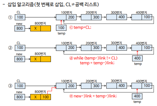 CLinkedlist insert(CL, n) //환형 연결리스트에 주어진 노드를 삽입