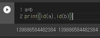 여기에서 is는 a와 b의 값에 중점을 두고 비교하는 것이 아닌, 같은 메모리 위치에