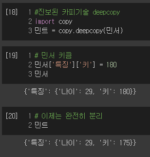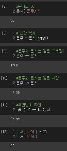 객체가 이름만 다를 때, 그리고 중첩된 딕셔너리의 copy에 대한 설명을 담은 코드를 작성해보았다