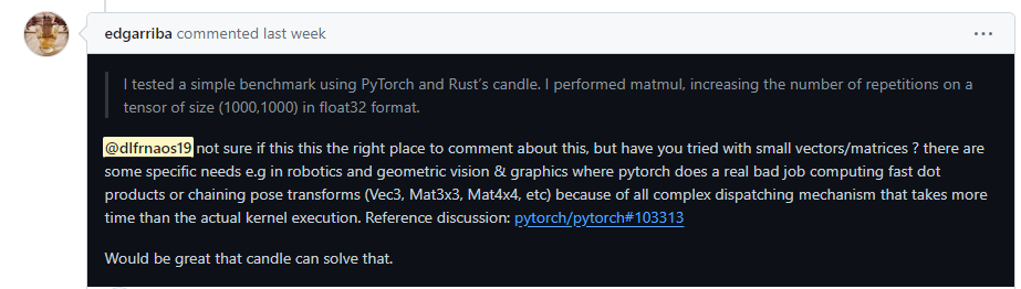 본인의 도메인에서는 작은 행렬을 연산하는 것이 일반적인데, 파이토치가 여기에 bad job이라고 한다.