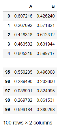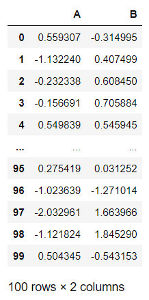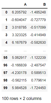 x = pd.DataFrame({'A':np.random.randn(100)*4+4,'B':np.random.randn(100)-1})