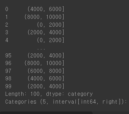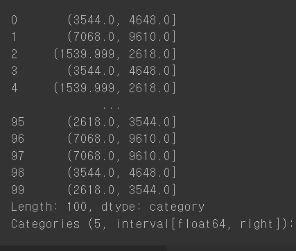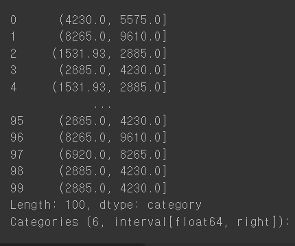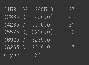 pd.cut의 bins를 개수값으로 넘기는 방법(데이터의 최소 최대를 균등하게 bins개수만큼)