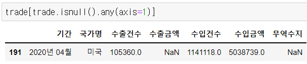 #trade 데이터 프레임에 결측치를 찾는 조건식 삽입