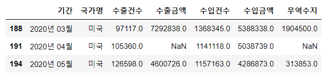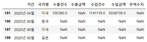 trade.dropna(how='all', subset=['수출건수', '수출금액', '수입건수', '수입금액', '무역수지'], inplace=True)