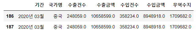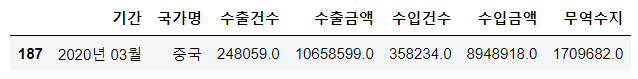 trade[(trade['기간']=='2020년 03월')&(trade['국가명']=='중국')]