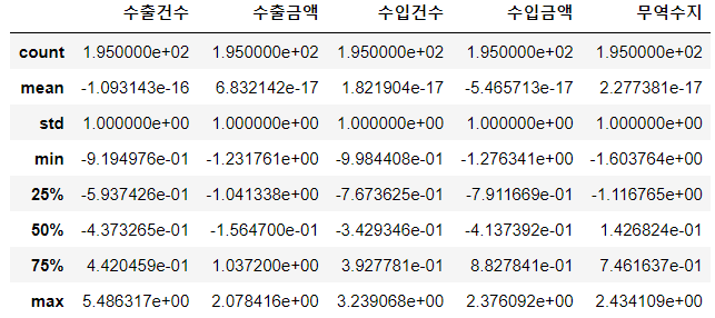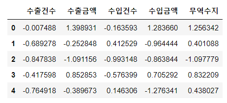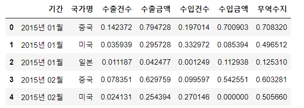 cols = ['수출건수','수출금액','수입건수','수입금액','무역수지']