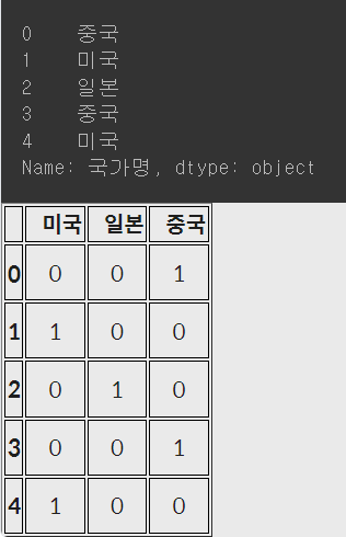 # get_dummies를 통해 국가명 원-핫 인코딩