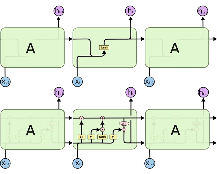 LSTM이 기존 RNN과 다른점은 time step 셀에 hidden state뿐만 아니라 cell state도 함께 전달한다는 것