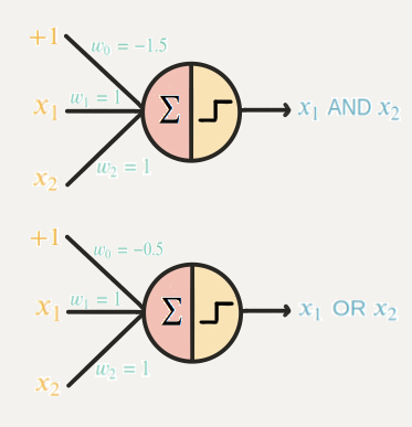 이 간단한 모델이 복잡한 신경세포와 동일하게 작동되는 것은 아니지만, 퍼셉트론을 다양한 구조로 연결하고