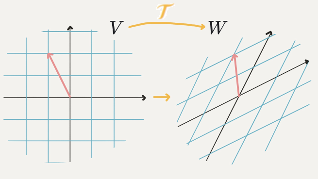 선형 변환이란 선형이라는 규칙을 지키며 V 공간상의 벡터를 W 공간상의 벡터로 바꾸는 역할