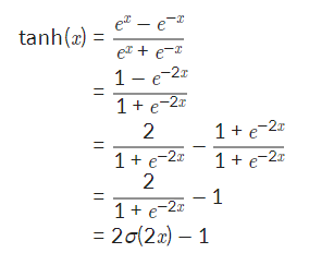 하이퍼볼릭 탄젠트 함수를 시그모이드 함수를 이용한 표현