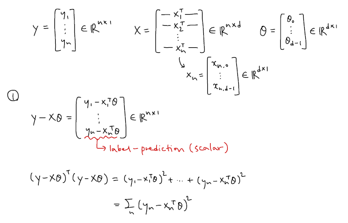 데이터 x와 라벨 y가 짝 지어진 형태이며 모델이 선형 모델 y=θ⊤x 로 표현할 때 예측 값은 θ⊤xn이며 이 값과 라벨 yn의 차이는 노이즈가 됨