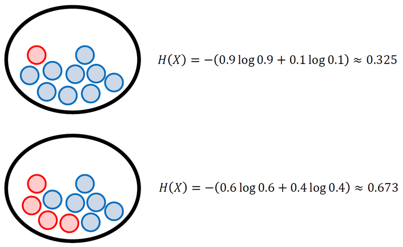파란공 9, 빨간공 1개일때의 엔트로피 0.325