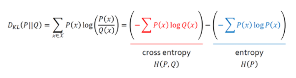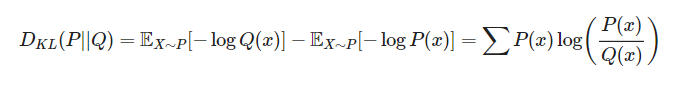 P(x)대신 근사적인 분포 Q(x)를 사용했을 때 발생하는 엔트로피의 변화량을 나타내는 값