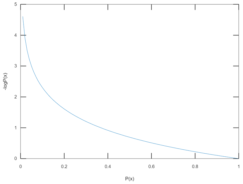 밑이 e인 자연로그를 사용 했을 때 P(x)의 값에 대한 -logP(x)의 그래프