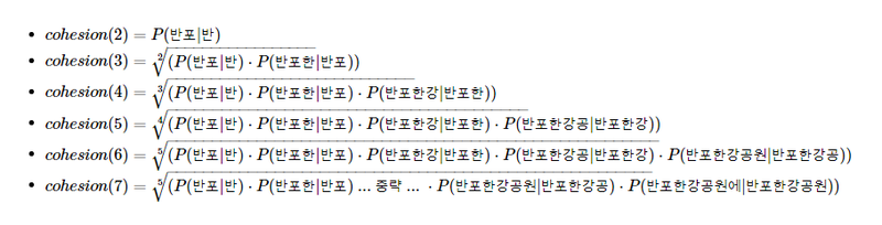 soynlp의 응집확률(cohesion probability)