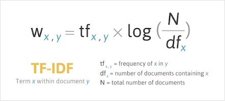 문서가 y, 단어가 x 일 때 TF-IDF의 수식