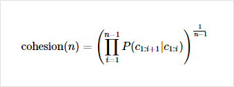 이 값이 높을수록 전체 코퍼스에서 이 문자열 시퀸스는 하나의 단어로 등장할 가능성이 높음
