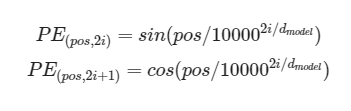 print("if pos == 0, i == 0: ", np.sin(0 / np.power(10000, 2 * i / d_model)))