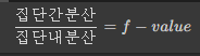 집단 간 분산과 집단 내 분산의 비를 f-value(f 통계량)라고 하고 이를 f-검정에서 활용함